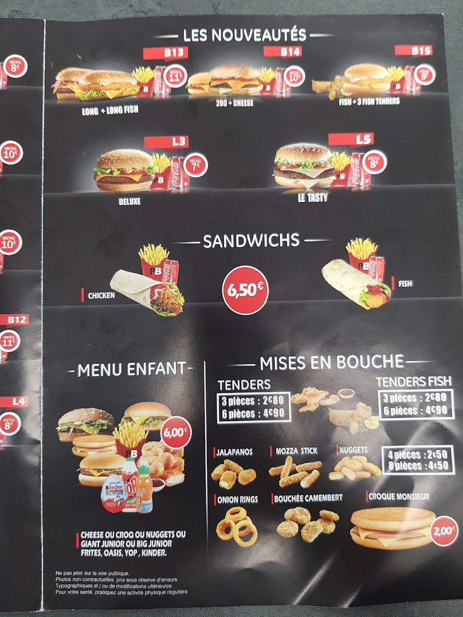 But the highlights of Point B are their signature Menus Incontournables, featuring dishes like the Cheesy Bacon with special bread, minced steaks, turkey bacon, onions, pickles, melted cheddar, ketchup, and mustard. The B11 Chick'n Beef with special bread, breaded chicken, salad, onions, pickles, melted cheddar, and a special sauce is also a popular choice.